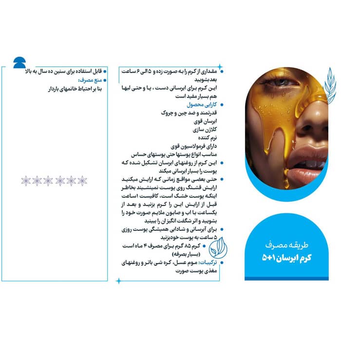 مقداری از کرم را به صورت زده و ۵ الی ۶ ساعت بعد بشویید. این کرم برای ابرسانی دست ، پا و حتی لبها هم بسیار مفید است