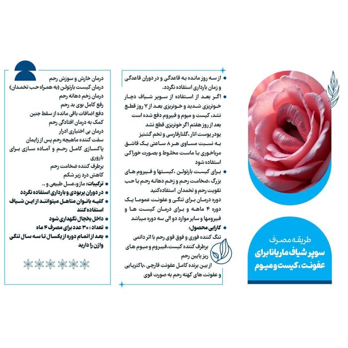 - از بین برنده کامل عفونت قارچی ،باکتریایی و عفونت های کهنه رحم به صورت قوی