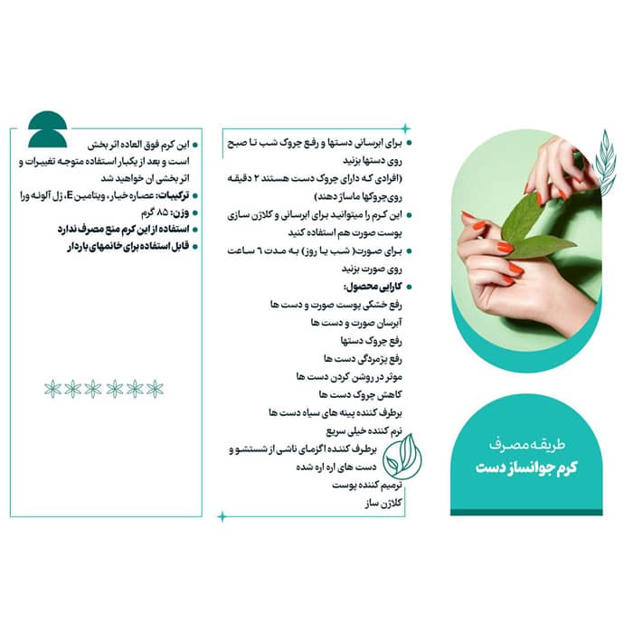 برای ابرسانی دستها و رفع چروک شب تا صبح روی دستها بزنید. افرادی که دارای چروک دست هستند ۲ دقیقه روی‌چروکها ماساژ دهند. این کرم را میتوانید برای ابرسانی و کلاژن سازی پوست صورت هم استفاده کنید. برای صورت شب یا روز به مدت ۶ ساعت روی صورت بزنید.